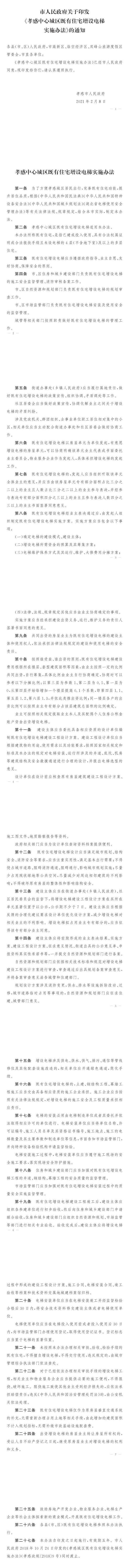 市人民政府关于印发《孝感中心城区既有住宅增设电梯实施办法》的通知